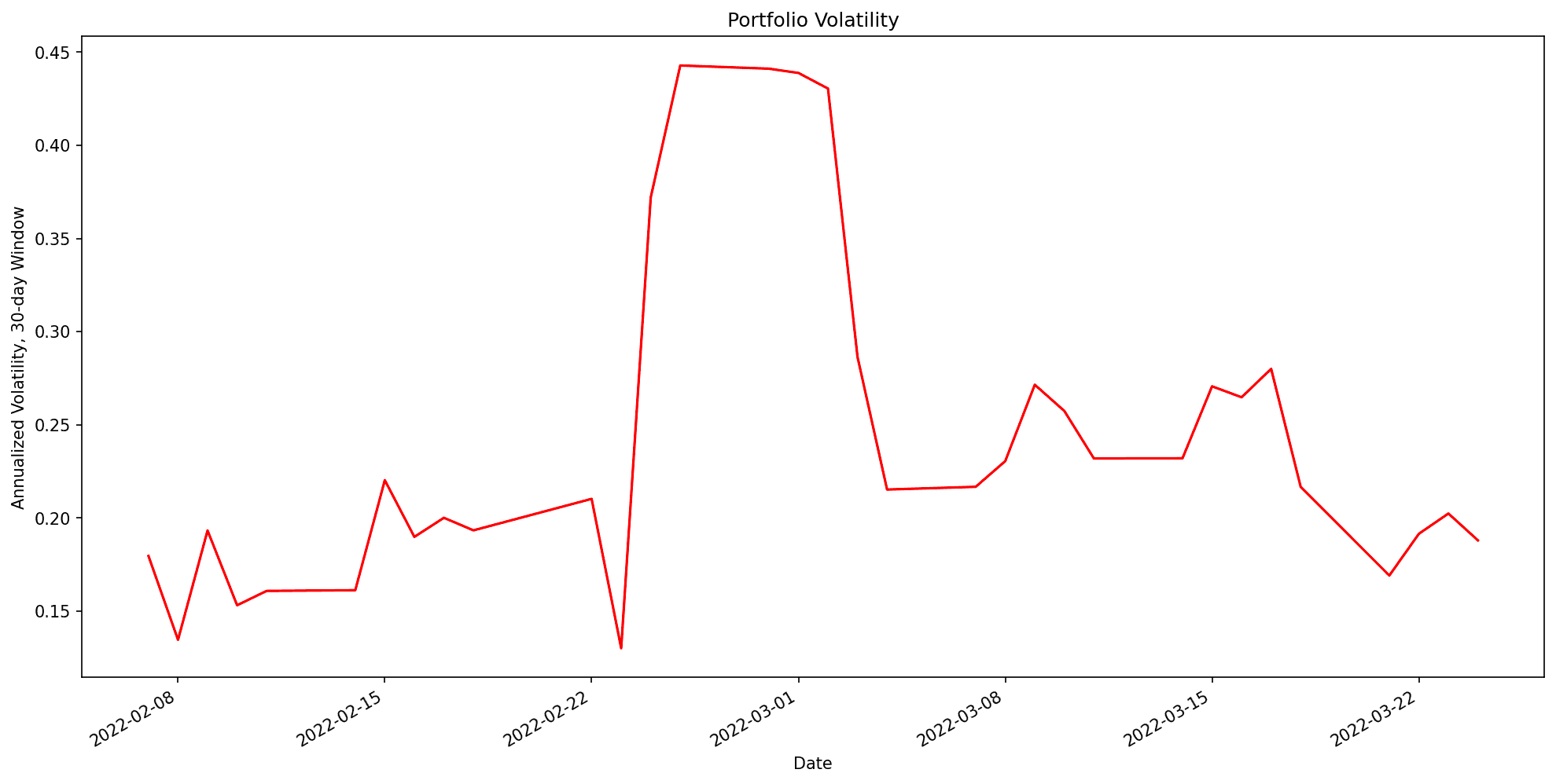Look at that, our volatility plot matches up quite well with the plot of our portfolio’s returns! Trust me, there’s no better feeling than final results that make sense.
