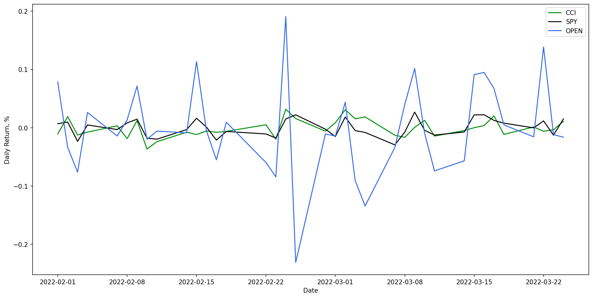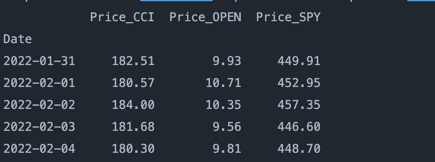 portfolio = CCI.merge(OPEN, on='Date', suffixes=('_CCI', '_OPEN')).merge(SPY, on='Date', suffixes=('_OPEN', '_SPY'))