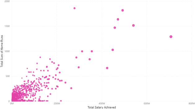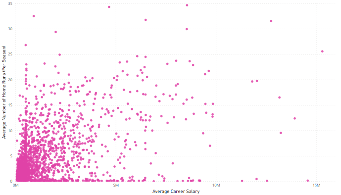 Much better. Remember to always question your own approach if things don’t seem right! There’s no shame in catching a mistake. In case you were curious, I used slicers in Power BI to only target years after 1984 and had the report’s filters exclude any batters who hadn’t scored a single home run.