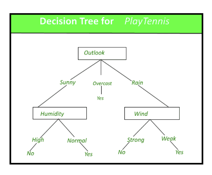Decision trees require you to start with a question, for example: Is the weather okay for tennis today? Then, like a waterfall there are subsequent questions to ask such as: “what’s the weather outlook say?”, If it’s rainy - “what’s the wind like?” or “Is the humidity higher than usual?”. Decision tree models are intended to find the best possible way to split the aggregated data. They’re usually a supervised learning algorithm. The problem, however, with using decision trees for something that needs accuracy is that they’re notoriously vulnerable to bias and over-fitting. To solve this, enter the random forest algorithm